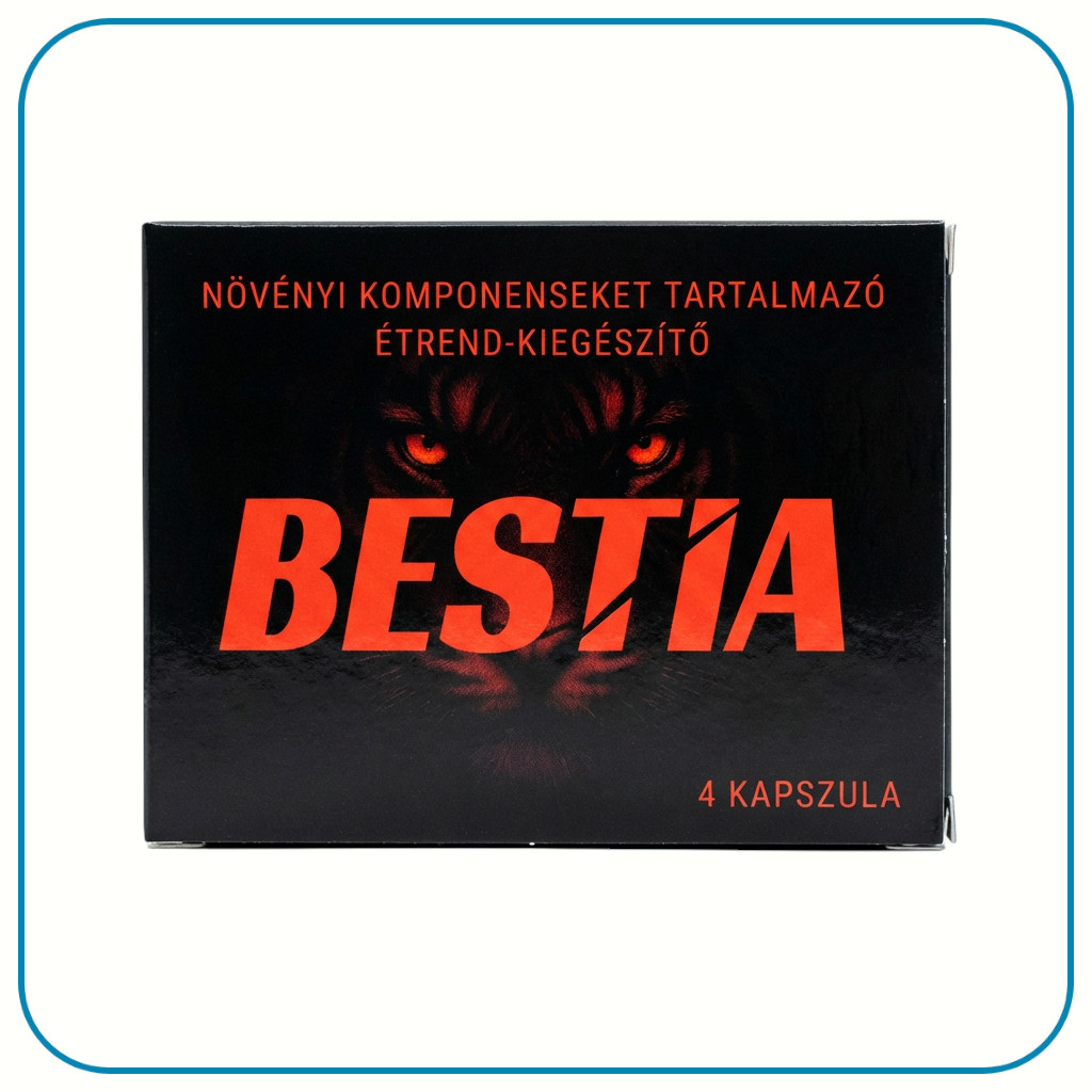 Az A BESTIA alkalmi potencianövelő étrend-kiegészítő kapszula férfiak számára, amely növényi eredetű összetevőket tartalmaz. Összetétele a férfi vitalitás, a fizikai erő és a szexuális vágy időszakos támogatására lett kialakítva.