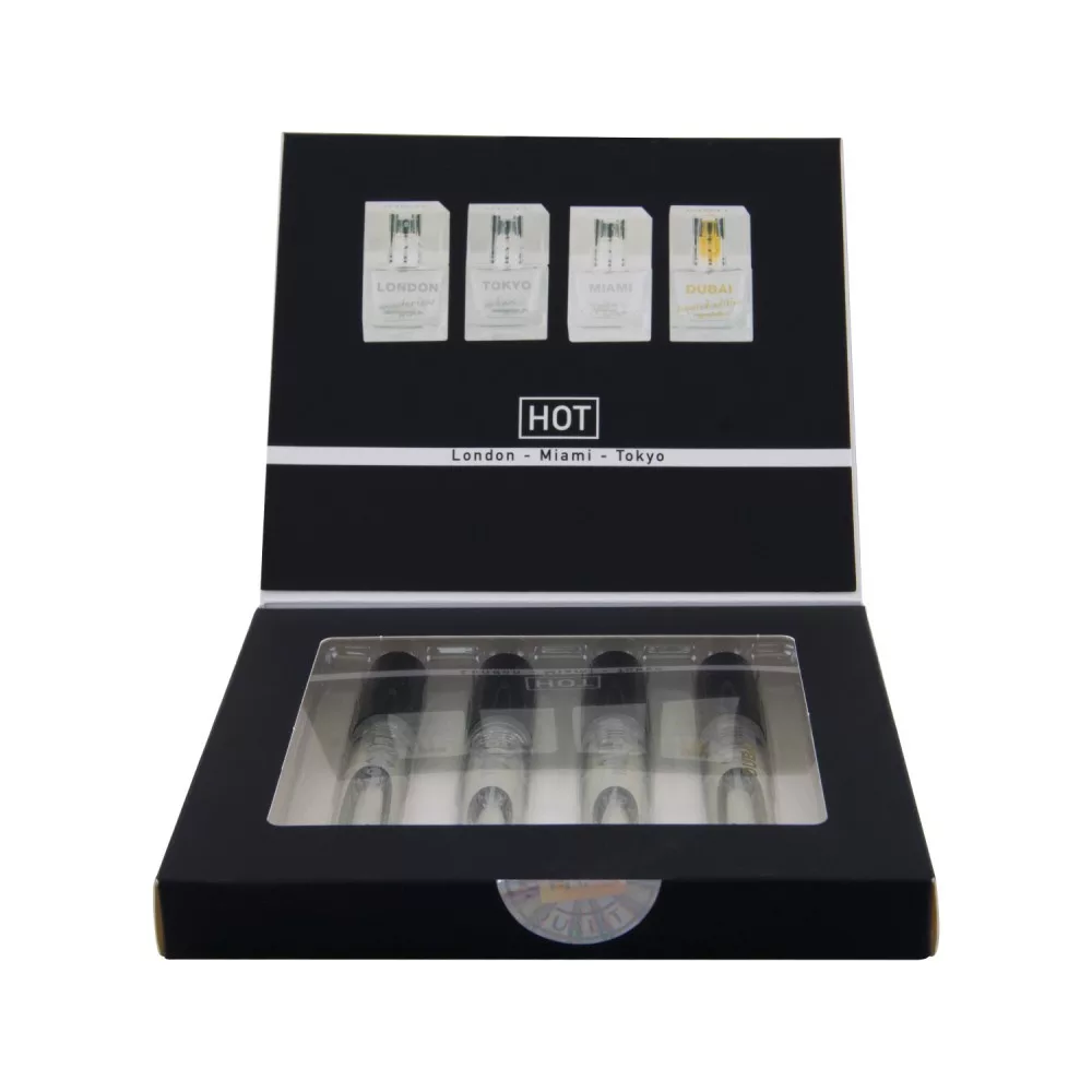 A csomag tartalma: 5 ml London, Dubai, Miami és Tokyo